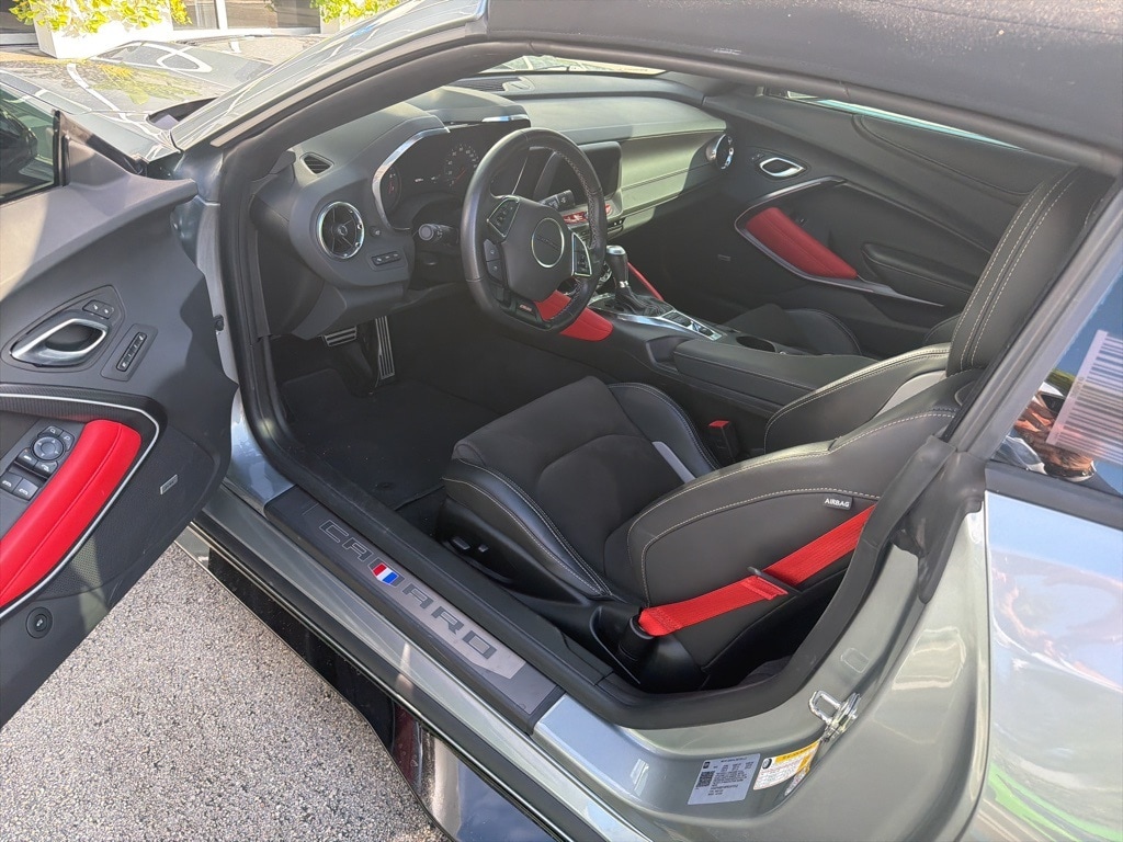 Apple CarPlay/Android Auto, Automatic temperature control, Black Camaro Emblem Fender Badge w/Red Outline, Bose Premium 7-Speaker Audio System Feature, Front dual zone A/C, Heads-Up Display, Heated Driver & Front Passenger Seats, Heated steering wheel, Leather-Trimmed Seat Trim w/Sueded Inserts, Magnetic Ride Control, Memory seat, Paddle-Shift Manual Controls, Power convertible roof, Preferred Equipment Group 2SS, Rear Park Assist, RECARO Performance Front Bucket Seats, Red-Painted Calipers, Redline Edition, Redline Edition Graphics, Ventilated Driver & Front Passenger Seats, Wheels: 20" x 8.5" Fr & 20" x 9.5" Rr 5-Spoke Alum, Wheels: 20" x 8.5"Fr/20" x 9.5" Rr Aluminum. 16/26 City/Highway MPG