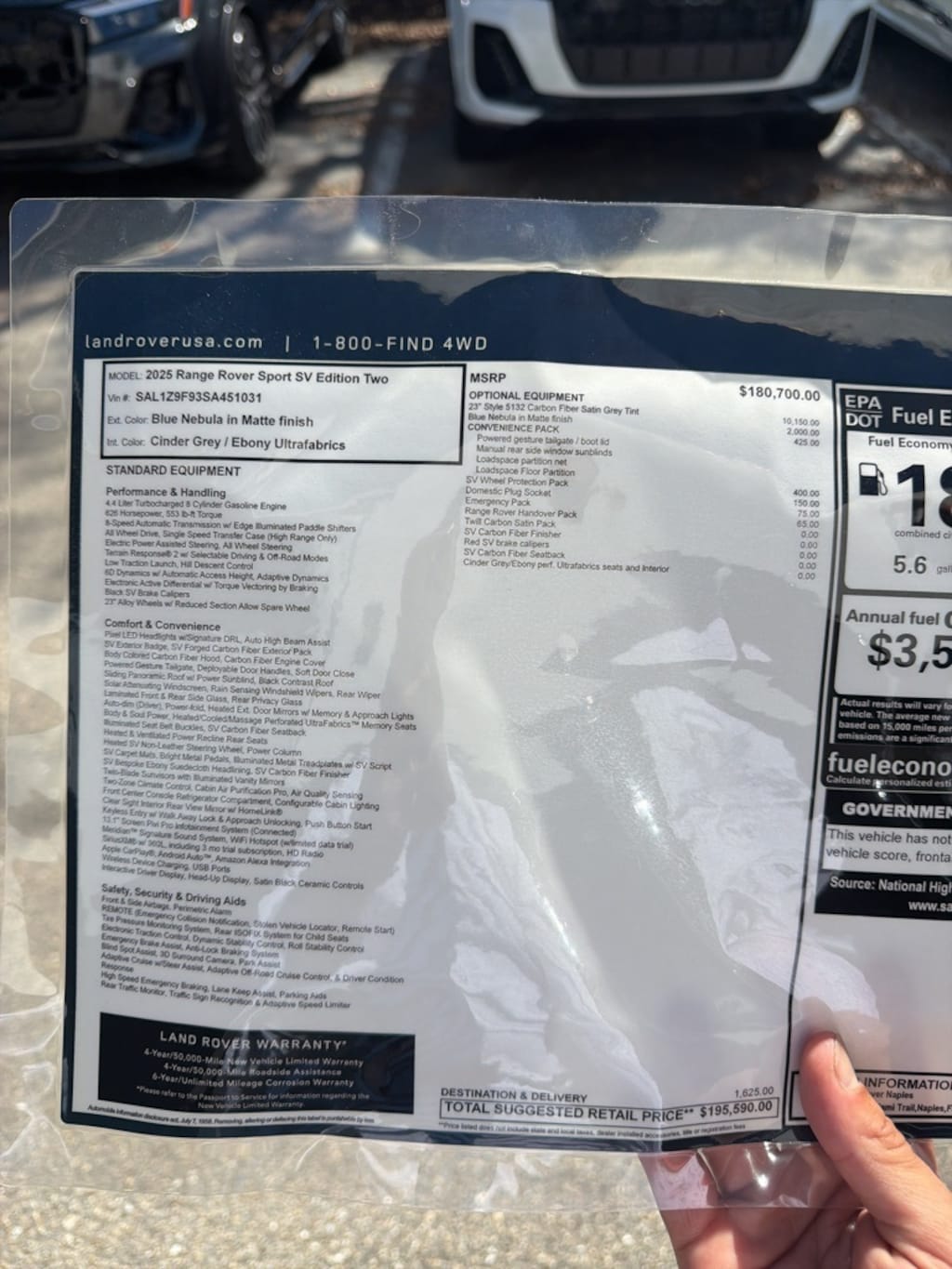 Blue Nebula in Matte 2025 Land Rover Range Rover Sport SV Edition Two 4.4L V8 Twin Turbocharged 8-Speed Automatic AWD